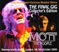 2009年、ロンドンはハマースミス・アポロにて、5日間に渡って行われたモット・ザ・フープルの歴史的再結成コンサートより、最終日となる10月6日公 演を、オーディエンス録音と観客撮りの映像の2種で収録しています。ディスク1&2には既発盤「The Final Gig」のリマスター版を収録。最前列録音されたオリジナルDATをマスターとした既発は、自然な音像ながら部分的には音のこもりが気になったり、やや派 手さに欠けるサウンドでしたが、本盤で聴けるリマスター・テイクは、同一のマスターを使用しながらも、適度なイコライズによってまるで別物のようなクリ アーかつ迫力あるサウンドに生まれ変わっています。ドラムを始めとする各楽器音がよりクリアーに収録されており、全体的に歯切れの良い音像を楽しむことが でき、音の輪郭がよりはっきりした素晴らしいサウンドで、この歴史的最終公演を存分に堪能することができます。各曲で聴ける、ノスタルジックなムードで いっぱいの伝統的英国ロック然とした味わい深く切ないサウンドは絶品。セットは5日間ともほぼ同じでしたが、この日はアコースティックセクションで初日公 演に続きLike A Rolling Stoneを演奏しています。The Journeyも感動的に響きます。Ready For Loveではミック・ラルフスが、オヴァレンド・ワッツはBorn Late 58でリードボーカルをとります。オリジナル・ドラマーのデイル・グリフィンはRoll Away Stone, All Young Dudes, Keep A Knockinの3曲でゲスト参加。メインセットを締めるAll The Way From Memphisではデフ・レパードのジョー・エリオットがコーラスで参加します。ショウラスト8曲ではイアンとミックの家族がコーラスとて参加。最終曲 Saturday Gigsでの会場が一体となった感動的な演奏は絶品で、聴いた誰もが、ノスタルジーと寂しさでいっぱいになってしまうことでしょう!70'sブリティッ シュ・ロックというひとつの歴史と文化の終わりを象徴するような最高のメモリアル・ライブの感動的ドキュメント。 DVDには、当日のライブを高品質なオーディエンス・ショットで約2時間収録しています。