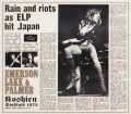 凄まじい、あまりにも凄まじいドキュメント・アルバムが到着しました。本作に収められているのは、伝説となっているELP初来日の甲子園公演。そう、あの大暴動が起きたライヴなのです。本作は既発のリマスターなどではなく、最近、突如ネットに登場した過去最高音質の新マスター。その鮮度は驚異的で、まるで昨日録ったかのようなリアル・オーディエンスで一大事件が耳元で蘇るのです。ただし、ネット音源そのものは高音質とは言っても何カ所かノイズがありましたが、本作では丁寧なリマスタリングを施し、ノイズを可能な限り除去。過去最高音質のマスターを、さらにアップグレードさせました。「手に汗握る」と書くと、まるでB級映画の宣伝のようですが、文字通りグーに力が入る大事件アルバムなのです!本作の命は終盤の暴動シーンなのですが、録音の凄まじい威力は冒頭から炸裂! 開演を待つ数万人の拍手は文字通りの「万雷」で、日本人ならではのそろった手拍子も、会場の広さを感じさせる時差を伴いながら大迫力で迫る。「こりゃあ、演奏はまともに聞こえないな……」と思いつつ、ライヴが始まると二度目のびっくり。なんと、バンドの演奏が素晴らしくクリアなのです! もちろん、“サウンドボードのようにダイレクト”というわけにはいきませんが、「演奏が主、歓声は従」の関係は微塵もブレず、モーグ・シンセサイザーの唸りが鮮やかに浮かび上がる。万を数えるぶ厚い手拍子を従えながら、塊となって突進する「Hoedown」の大スペクタクル……凄い。続くは、チューニングの狂いをモノともせずに突進する「Tarkus」。さすがに「Epitaph」を交えて25分超えの超大作だけに全編手拍子の嵐とはいきませんが、組曲が転換するたびに歓喜の拍手の渦が起こり、変拍子リズムへ付き従う。ELPの優れたオーディエンス録音は数あれど、全盛期ELPの超速変拍子について行く大観衆など、日本以外にはあり得ない。バンドの熱演と観客が織りなす熱狂のリアリズムは、チューニングの狂いですら異様な迫力に転化してしまうほど。そう、本作に封入されているのは、きめ細やかに磨き上げられた“芸術”などではなく、狂おしいまでの“現実感”。1972年のELPだからこそ成し得た、甲子園から溢れ出す“現象”なのです!そんな“1972年の現象”を象徴するのは、やはり終盤の大暴動シーンでしょう。「Rondo」に組み込まれたドラムソロで、その瞬間は訪れます。熱狂したひとりの観客がフェンスを乗り越えて乱入。警備員が取り押さえようとしますが、その合間にひとり、またひとりと乱入していき、千人を超える観客が突入してしまうのです。熱狂して突撃してくる群衆を前に、警備員も逃げ出すしかなくなり、ついには警察によってアンプの電源が落とされてしまう。黄色い土埃と発煙筒の煙が渦巻く中、キースはオルガンの上に仁王立ちして「みんな下がれ!」とジェスチャーするも、事態は一向に収まらない。バンドお抱えのカメラマンは、ここぞとばかりにシャッターを押しまくり、ローディたちはステージに上ろうとする観客をマイクスタンドで叩き落とし、マネージャーは半泣きで取り乱す。狂乱を極めた会場で、ひとりドラムソロを続けるカールでしたが、バンド演奏に戻る決めパートを演奏しても、誰も入ってこない。それも当然、危険を感じたキースとグレッグは、ステージを逃げ出すように降りており、カールの決めフレーズを場外の車の中で聴いていたのですから。裏舞台では、警察の中止命令を撤回できないか交渉していたそうですが、結局そのままコンサートは中止。キースの日本刀パフォーマンスも披露されず、予定されていた「Endless Enigma」や「Trilogy」は演奏されませんでした。(書籍「エマーソン・レイク&パーマー、衝撃のロック・トリオ伝」より)観客側のドキュメントを収めた本作でも、目の前の狂乱に不安をかき立てられた観客の話し声、メンバーが消えても再開を望む拍手の渦、そして「本日の催しは終了いたしました」のアナウンスがクリアに収録されています。沸騰し観客の「アホ!」「ボケ!!」「バカヤロー!」の怒声も「帰れ!」コールも超リアルに迫ってくる。まさに“事件”、“現象”だった。本作は、聴く者をその渦中に引きずり込むアルバムなのです。大暴動の狂乱が終わっても、本作は終わりません。ボーナス・トラックとして、当時の(某有名)ラジオ番組を収録しました。ライヴを控えたメンバーを放送局のスタジオに招いたミニ・パーティの模様なのですが、これがまた激レア&強烈なド級音源です。まだライヴを行っていない「7月19日」の収録で、これから雨や暴動が待っているとは想像もしないファンとメンバーの交流会。ファンは下駄や竹刀などのお土産を持ち込み、メンバーは「ライバルのミュージシャンは誰?」の質問に「天皇陛下!」とジョークを飛ばす。中には「レズリー・ウェストと曲作りしているという噂は本当ですか?」など、思わずハッとする