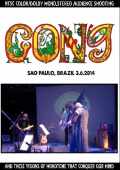 最新ライヴ映像が入荷致しました。2014年3月の南米ツアーより ブラジル、サンパウロ公演をオーディエンス・ショットで収録 しています。大きな文化的公共施設的な施設での特設ステージ のようで、通常のステージ演奏とはちがった感じ。スタジオ・ セッションのようにミュージシャン同士が輪になってむきあう 感じのセッティング。お客さんはそれを見下ろしています。 カメラはなんとミュージシャンと同じフロアにいて、待機してる クルーのような目線で撮っていて、邪魔者もまるで無く、素晴ら しい臨場感です。聴いて最高、見て楽しい、ホントに楽しい楽し いライヴです。ゴングとしては近年それほど活動が活発では なかっただけに、嬉しい映像でございます。5月にはソロとして 来日予定だったデヴィッド・アレンさん。急病で入院、来られ なくなってしまいました。メニューチャプター仕様で収録時間は90分となります。 Centro Cultural, Sao Paulo, Brazil 3.6.2014 757 / Radio Gnome / Tic Toc / Escape Control Delete / Tropical Fish: Selene / Change the World / Flute Salad - Oily Way - Outer Temple - Inner Temple / Goddess Invocation Om Riff / I've Been Stoned Before / O Mother / Zeroid - Yoni Poem / Opium for the People - Dynamite / Encore: You Can't Kill Me LINE-UP Daevid Allen(guitarrista e vocalista) / Fabio Golfetti (guitarra, vocais) / Kavus Torabi (guitarra e vocais) / Ian East (saxofone, flauta) / Dave Sturt (baixo e vocais) / Orlando Allen (bateria e vocais)