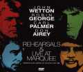 1986年6月4日と5日に行われたマーキー・クラブ公演のリハーサルとライヴ(マーキー2日目)を、どちらも良質なオーディエンスショット映像で収録。関係者がバンド側から許可を受けて撮影した映像らしく、どちらも見やすく楽しめる映像です。まずは冒頭のリハーサルテイク。オーディエンスによるビデオ撮影ですが、収録者は手馴れている様で手ブレれも殆ど無く、画質も音質も当時のものとしては充分でしょう。撮影位置はステージ向かってやや右側、列にして5列目程度からのもので、ステージとメンバーが程好く収まっているので観易いのも嬉しいところです。「Go Down Fighting」は画面右でロビンが本番さながらに熱唱しており、ルーズで熱っぽいギター捌きをしながら楽曲を率いている様子が印象的です。横でサポートするウエットンも一音ずつ確実に音を出しており、あの特徴的なベース音を伴いながらバックコーラスで演奏を支えている様子が見て取れます。しかし一番興味深いのは意外にもカールが熱を込めて叩いている点で、リズム面から曲の輪郭を際立たせているのがよく分かる映像になっている事でしょう。終曲部もメインのロビンが仕切るのではなく、ロビンが挙手して合図を送るとそれを受けたカールがリズム面から締めに入ってゆくという構図がこの映像からも観て取れ、この曲に於けるカールの重要度が高かった伺えます。またもうひとつ面白い点は、本番ではステージに居ないフィルが映っている事です。映像序盤で画面左側にギターのネックがチラッと映る程度で音は出していない様ですが、本番ではこの曲の後から参加するのでそこにスタンバイしているのでしょう。この事からこのリハはショウの流れの確認と、フィル登場のタイミングを図るものだった事が分かると思います。「Honky Tonk Woman」の映像では、なんとカールがフロントでギターを弾いているのが確認出来ます。しかしよく観るとそのギターを手と指で叩いているので「おや?」と思われるでしょう。実はこれ、ギター型のショルダー・シンセドラム(?)なのです。ギター型ですが、よ~~く観ると弦が張られていません。実際にこの時のライブを御覧になった方の話では左のネックの先にちょっとしたコントロールのファンクションがあり、右手でボディを叩くとリズムがスタートするというものだった様です。今で言うシンセギターの亜種とも言えますが当時としては大変珍しい楽器ですし、あの頃は他に似た様な楽器も無かったと思うので、これはひょっとするとカールが80年代に専属契約していた楽器メーカーREMOの試作機だったのかもしれません。そんな訳でこの曲ではカールがこの楽器を首から下げてフロントで電子的なリズムを叩き出し、次のドンのキーボード・ソロではこの楽器でドンと速いリズムの即興演奏バトルをしていた訳で、ここではその前段階の一コマが垣間見られる貴重なシーンとなっています。 「Don't Cry」のリハでは、映像の冒頭でカールが愛娘をドラムキットの中で抱いている映像からスタート。彼女はASIA IN ASIAがあった1983年生まれなのでこの時3歳か4歳の姿でしょう(※ちなみに彼女は現在、この当時のカールがそうなって欲しいと願っていた法律家に本当になられています)。それはさておき、ここでは嬉しい事にメンバー5人が揃った映像でリハの様子が追えるのですが、それだけに全体音とツインギターによる旋律の膨らみ方を目と耳で確認出来る絶好のポイントとなっています。曲中で或る程度せわしくコードを刻むロビンと、時折カッティングやブロークンコードを交えながら旋律に彩りを与えるフィルの姿がありますが、これはギターという楽器を本質的に硬いものとして捕らえているロビンと、本能的にギターを柔らかいものとして捕らえているフィルという両プレイヤーの個性が出ている訳で、それが映像からちゃんと伝わってくるのです。曲の前奏部分ではそのツインギターのサウンドの組み立てを中央のウエットンがじっと見て(特にフィルを)確認してから歌い始めているのも興味深いところです。しかしそのウエットンはどうかというと、そうして周囲のサウンドを厳しく統括しながらも自身では歌詞を覚え直そうともせず、相変わらずメチャクチャな歌詞を本番以上の惚れ惚れする声で歌い上げているのですから、まったく微笑ましいではありませんか。ちなみに終曲手前に入るギターソロの最後で「♪(Don't) Cr~~~~~y, Don't Cr~~~y...」と、非常に長く伸ばして歌っているのはこのリハのみの大きな聴きどころ。同シーンの4日本番は何も歌わず、5日本番は「♪Ahh...」としか歌っていませんので、テキトーな歌詞以外は本番以上の極上な歌唱が楽しめます。尚、英国KERRANG!誌に当時載った5日のライブ写真を見るとこの映像で観られる衣装とは違っており、更にこの映像ではウエットンの声も潰れて濁っていませんので、このリハは恐らく初日・4日のものと思われます。実際に4日の公演を観た方の話で