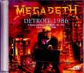 スラッシュ・メタル最重要の年、“1986年”。METALLICAが『MASTER OF PUPPETS』をリリースし、その半年後にはMEGADETHが『PEACE SELLS... BUT WHO'S BUYING?』を、SLAYERが『REIGN IN BLOOD』を世界に叩きつけた。数ヶ月のうちに頂点バンドたちが最高傑作を続々と生み出した奇跡の1年でした。そんな“1986年”を代表する極上映像がリリース決定です。本作に収められているのは「1986年10月28日デトロイト公演」。その極上オーディエンス・ショットです。何しろ、最高傑作『PEACE SELLS』のツアーですから世界中のマニアが映像を望むわけですが、残念ながらこのツアーにはプロショットが存在しない(初のプロショットは1988年エッセン公演と言われています)。本作は、そんな中でプロショット代わりとなる最高傑作映像なのです。その気になる内容の前に、まずはショウのポジション。『PEACE SELLS』時代と言えば、伝説の初来日を始め、MEGADETH初のヨーロッパ・ツアーも実現した時期。良い機会ですので、ここで彼らが世界に羽ばたいたツアーを振り返ってみましょう。 【1986年】 《3月20日『PEACE SELLS』完成》・6月28日-8月13日:北米#1(18公演) 《9月19日『PEACE SELLS』発売》・10月10日-12月6日:北米#2(25公演)←★ココ★ 【1987年】・1月27日-2月28日:北米#3(20公演)・3月6日-21日:欧州+ロングビーチ(8公演)・4月2日-6日:日本(4公演)・5月8日-6月20日:北米#4(33公演)・11月21日-12月31日:北米#5+リーズ(11公演) これがMEGADETH初のワールドツアー。本作のデトロイト公演は『PEACE SELLS』リリース直後の「北米#2」8公演目にあたるコンサートです。このショウは古くから映像が知られていますが、本作はその最高峰版。最近になって発掘されたアップグレード・マスターで、その画質/音質はケタ違いに素晴らしい! 事実としてはオーディエンス・ショットになるのですが、関係者撮影なのか、いわゆるオーディエンスっぽさがまったくないのです。何よりも凄いのは、安定感とドアップのズーム。ステージ正面の後方席からスシ詰めの観客の頭上越しに撮影しているのですが、その安定感は明らかに三脚を使っている。それ以上なのがズーム。とにかく凄まじく寄り、手元を映せばギター弦の1本1本、表情のアップになれば髪の毛の1本1本までばっちり。画面キャプチャーも掲載していますが、プロショットの1アングルとしか思えない超アップなのです。こうした異常ショットの凄味は既発群でも分かりましたが、本作はその上にマスター鮮度まで異常。開演前のバンド紹介シーンこそテープヨレの乱れも見られますが、それ以降はノイズレスの超美麗画質。プロショット風アングルに相応しいプロショット級の艶やかな画面が全編を貫くのです。もちろん、サウンドも鮮度バツグンでベースの1粒までゴリッゴリでノイズレス。「実はテレビ放送だったんじゃないの?」と思ってしまう映像美なのですまさしく『PEACE SELLS』時代の最高傑作映像なのですが、そのクオリティで描かれるショウがまた素晴らしいにもほどがある。残念ながら11曲・約50分のショートセットなのですが、その中には歴史的な大名盤『KILLING IS MY BUSINESS』『PEACE SELLS』を濃縮還元。セットが特濃なら、演奏も特濃。ツアーが始まったばかりの勢いに溢れつつ、8公演目でエンジンも全開でインテレクチュアル・スラッシュの粋がブチかまされる。あの2枚から編まれたベスト盤のような特濃スラッシュ空間なのです。もちろん、メンバーは黄金のクリス・ポーランド&故ガル・サミュエルソン。クリス独特のフュージョン調トーンも素晴らしいですし、ガルも見事すぎる。最近、ムステインは現メンバーのダーク・ヴェルビューレンを褒めるのに「まるでガルのようだ」と言っていましたが、彼こそがMEGADETHの個性を決定づけたドラマー。その妙技が素晴らしいサウンドで存分に味わえるのです。初期スラッシュ・シーンでは一歩で遅れていたMEGADETH。実際、デビュー直後はMETAL CHRCHやEXODUSの前座も務めていました。そんな彼らがなぜ、ライバル達を追い抜き、“四天王”の一角にのし上がることができたのか。そして、METALLICAに次ぐNo.2の座にまで登り詰められたのか。それは『PEACE SELLS』があまりにも素晴らしい大名盤であり、その後のツアーが強烈だったからに他なりません。本作は、そんな時代を目撃できる最高傑作なのです。『PEACE SELLS』時代のプロショット……それは永遠に叶わぬ夢でしょう。その乾きを癒してくれる、プロショットばりの傑作映像。どうぞ、“奇跡の1986年”を存分にご堪能ください! Token Lounge, Detroit, MI. USA 28th October 1986 (50:50) 1. Intro. 2. Rattlehead 3. Wake Up Dead 4. The Conjuring 5. Peace Sells 6. These Boots 7. Devil's Island 8. Killing is My Business...And Business is Good! 9. Bad Omen 10. My Last Words 11. Mechanix 12. Last Rites/Loved To Deth COLOUR NTSC Approx. 51min.